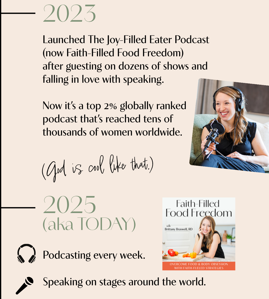 Over the last 13 years, Iâve worked with more than 300 clients and families, empowered tens of thousands through 60+ podcast guest episodes, and led food freedom & body image workshops for organizations like Sadie Robertson Huffâs LO Sister. Iâve spoken on stages and at universities across the countryâincluding Auburn, Texas Tech, and Abilene Christianâbecause THIS message needs a mic. đ€