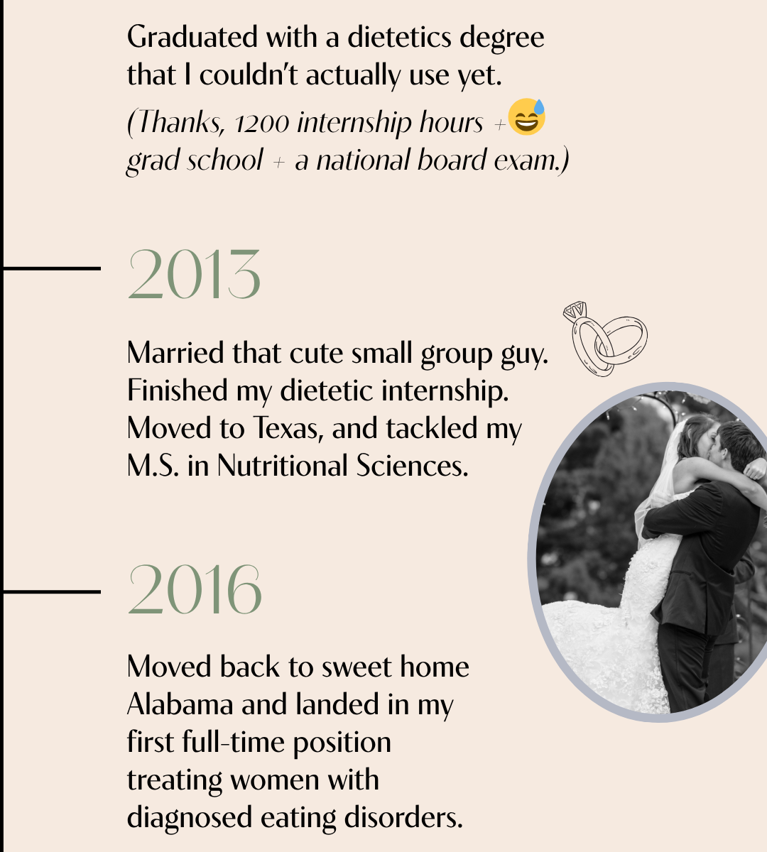 I even made my own wedding cake, ran a side hustle baking custom confections, and seriously considered hanging up my RD license for a stand mixer and a dream.