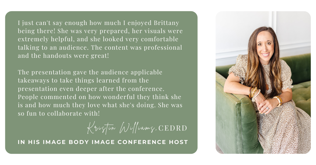 “I love how Brittany incorporates faith and biblical truth into conversations about food and body image.”